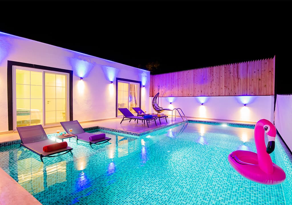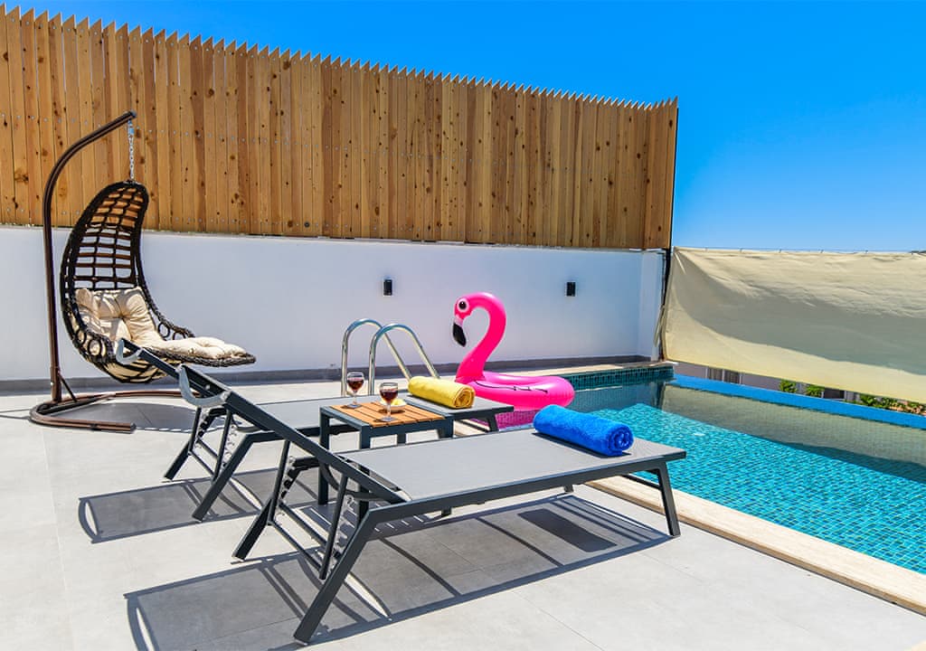 Villa Gibris içerisinde derinliği 155 cm olan açık yüzme havuzu bulunmaktadır.